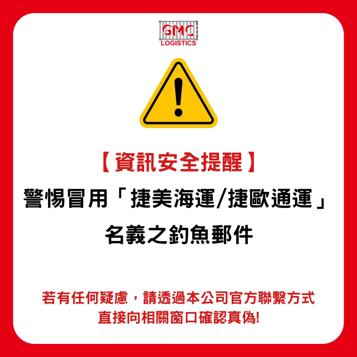 【資訊安全提醒】警惕冒用「捷美海運/捷歐通運」名義之釣魚郵件 近期本公司發現有不法人士冒用「捷美海運」或「